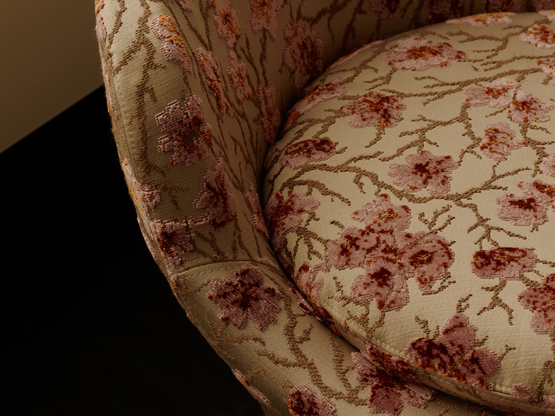 Подобно бесконечному цветочному ковру, игривый декор CHERRY BLOSSOM ложится на поверхность этого изысканно выполненного жаккардового велюра, вдохновленного нежным великолепием цветущих весной вишневых деревьев. В тонких нюансах пышные формы цветов сияют бархатистым ворсом и заметно контрастируют с матово мерцающей хлопковой сатиновой основой с заметной глубиной. Тонкие контуры завершают мотив в искусной технике эпингле. Цветы выглядят удивительно пластично – как будто они перенесены прямо с природы на ткань. Филигранная сетка из тонких веточек, сплетенная из букле с мягкой текстурой, вступает в гармоничный диалог матовой и глянцевой поверхности с гладкой атласной поверхностью. Таким образом, цветочное великолепие превращается в декоративную обивочную ткань, которая привлекает не только тактильной привлекательностью, но и утонченной элегантностью.