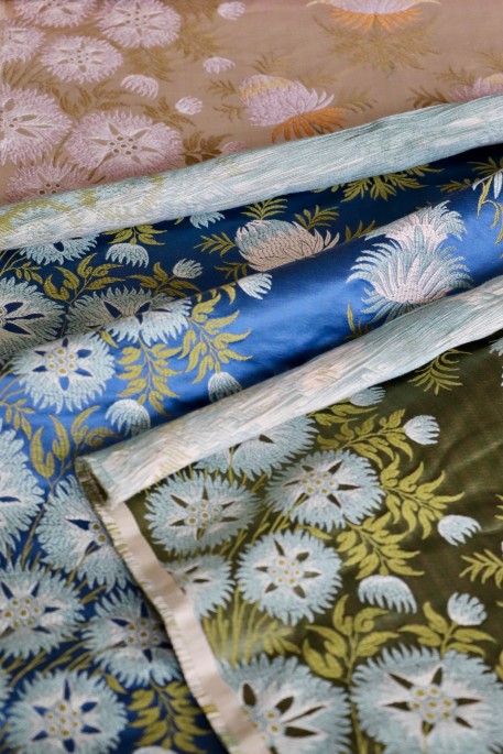 Коллекция Les Trois Sœurs раскрывает три богатых ткани. Жаккардовый кашемир Napoleon 1st, парчовые лампы 18-го века и английский ситец начала 20-го века, узоры и цвета которых были пересмотрены. Три эпохи, три техники, три разных стиля, выбор которых подчеркивает необычность идей Жиля и Буасье и художественный эклектизм, который определяет Maison Pierre Frey.