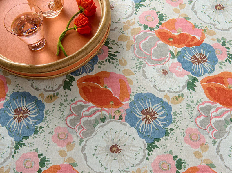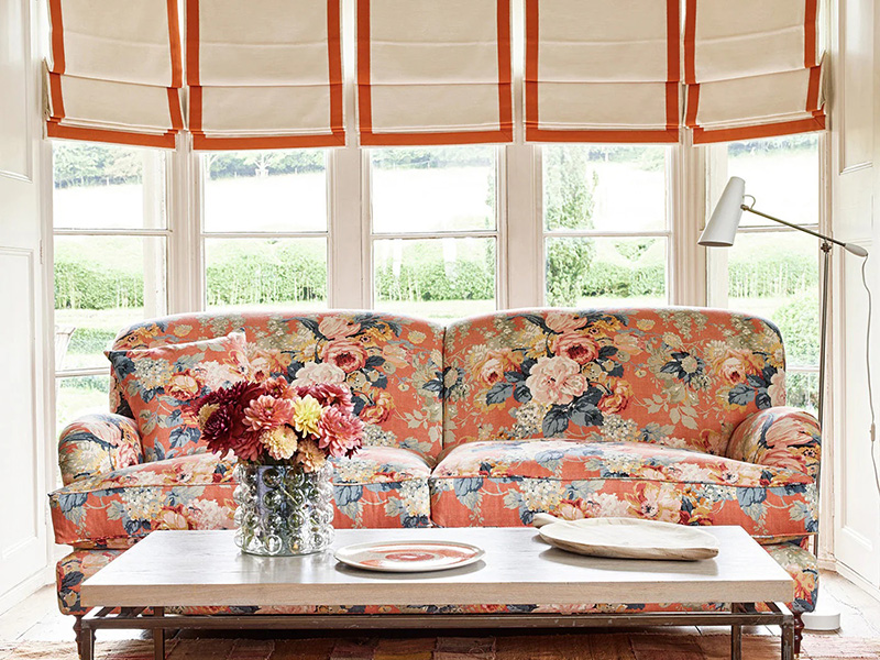 Оранжевый не всегда должен быть кричащим. В традиционных узорах он часто предстает в более спокойных оттенках — коралловом, абрикосовом или персиковом. Ткань Albertina прекрасно передает эту мягкость. Букеты роз и полевых цветов на фоне теплого кораллового фона придают рисунку легкий летний шарм . Иногда достаточно небольшого цветового акцента на окне — как свежих цветов на столе, — чтобы оживить пространство.