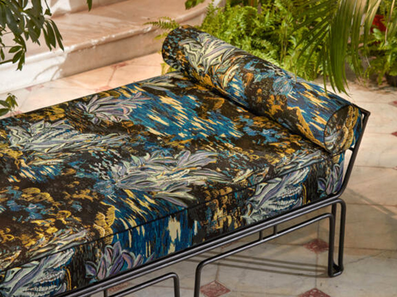 Подобно прибрежному саду, окутанному бризом, Oasis сочетает в себе щедрый декор в фирменном домашнем гобеленовом стиле, создавая атмосферу уединения на берегу моря. Две разные цветовые версии - иногда с преобладанием темно-синего, иногда с гранатово-красного - напоминают контуры сказочного пейзажа, украшенного графической листвой. Прочная ткань с богатым зерном, вокруг которой сочетаются эффекты материалов и текстур, создавая очаровательное убежище на открытом воздухе.