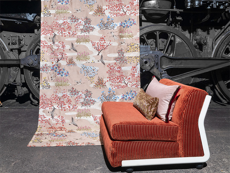 LUCKY CHARM будто венок сонетов, вдохновленный тишиной и красотой азиатских водных пейзажей. Журавли, олицетворяющие удачу и долголетие в азиатской культуре, грациозно скользят по только что расцветшим весенним пейзажам. Цветы и листья сияют в ясном свете после освежающего ливня. Выполненный в тончайшей жаккардовой технике, щедрый дизайн создает эффект благодаря богатству деталей и четкой, яркой цветовой гамме. Каждая сцена - это повествование о природе, которое одновременно передает счастье и художественную глубину.