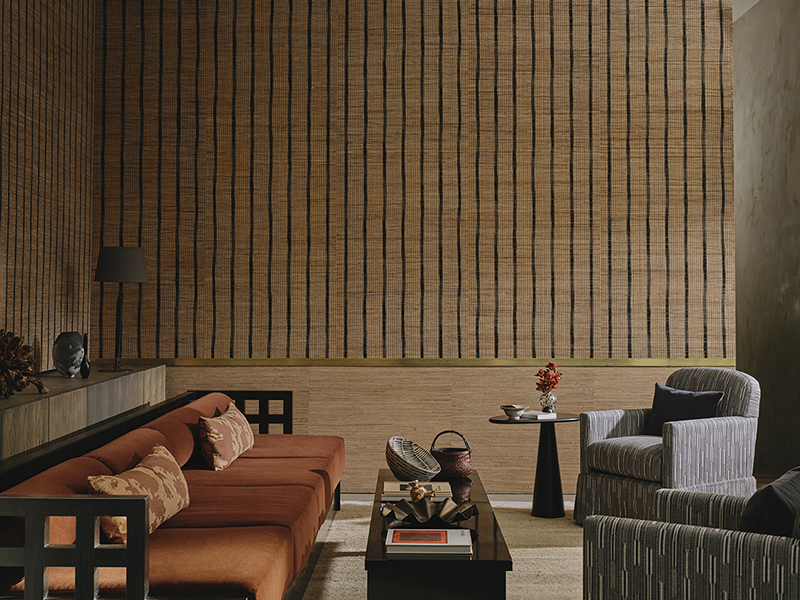 Студия Larsen воплотила свою страсть к натуральным волокнам, текстурам и традициям в коллекции обоев ручной работы, вдохновленной икатами, коврами туарегов и традиционным ткачеством. Эти текстурированные обои, изготовленные из натуральных материалов, таких как абака, водяной гиацинт, конопля, банановые листья и бумага, демонстрируют изысканные техники, тактильные поверхности и сбалансированную палитру нейтральных, землистых и насыщенных драгоценных оттенков.